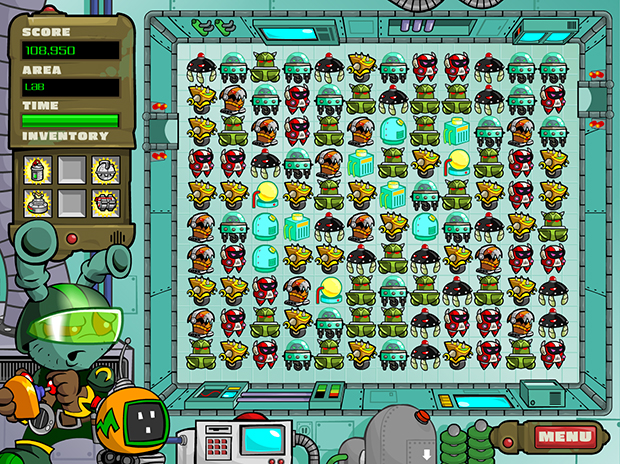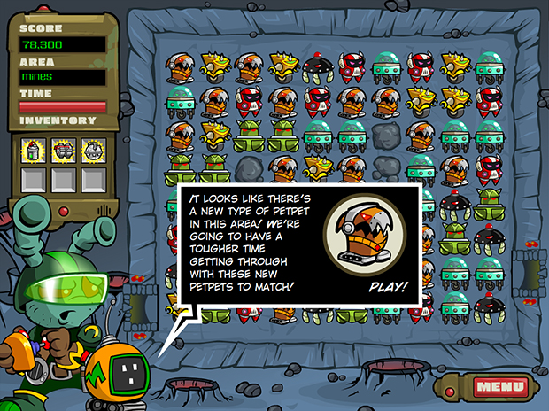 This match three-style game has 60 levels and 2 modes of play. Build game skill in endless mode or progress through an interactive comic in story mode, all the while collecting trophies.