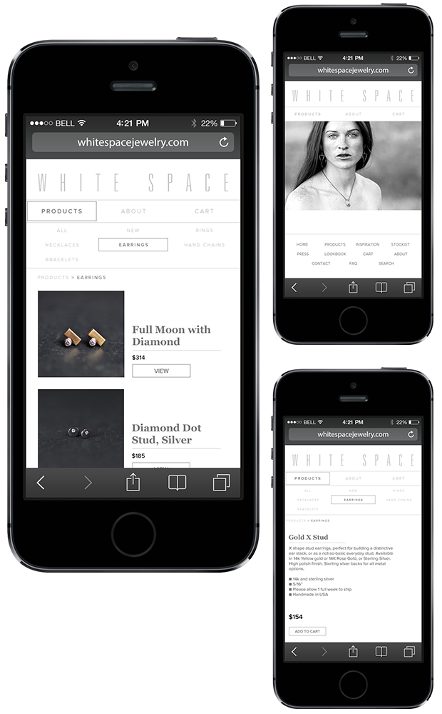 eCommerce website design for a local jewelry maker.